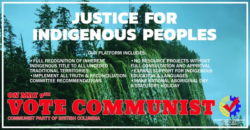 In contrast, the Communist Party of BC gives full support to movements which defend the interests of working people, including for a higher minimum wage, a provincial child care program, truly affordable housing, and doubled social assistance and disability rates. We demand to restore the pre-2001 tax rates, and to block new oil pipelines, the Site C dam, and the Ajax mine. We urge voters to defeat the Liberals in this election, but the struggle for real change will continue after May 9th.