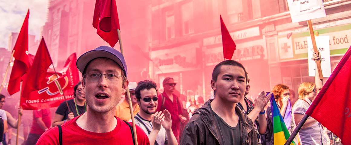 Mass resistance in our communities and workplaces, in the streets and at the ballot box, can defeat the parties of big business and open the door to a “people not profits” government. The goal of the Communist Party is to win genuine people’s power in a socialist Canada, where our economy and resources will be socially owned and democratically controlled. Homophobia and transphobia seek to entrench the heterosexual, patriarchal family, which is necessary for capitalism to police and maintain the gendered division of labour, and increase the rate of profits. The historic advance to socialism will make it possible to eradicate the interweaving forms of exploitation and oppression which threaten our world today. We urge you to join the Communist Party and the Young Communist League to achieve a liberated society in which, as Karl Marx said, “the freedom of each is the condition for the freedom of all.”