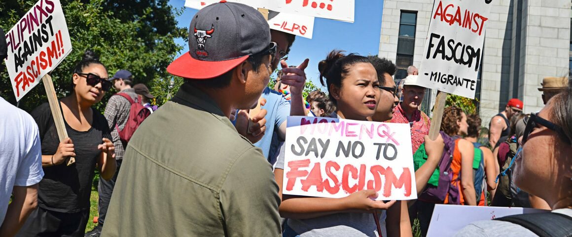 An estimated five thousand people jammed the area around Vancouver City Hall on August 19, effectively preventing white supremacist and Nazi groups from going ahead with plans for a racist rally against Muslim-Canadians and other racialized communities.