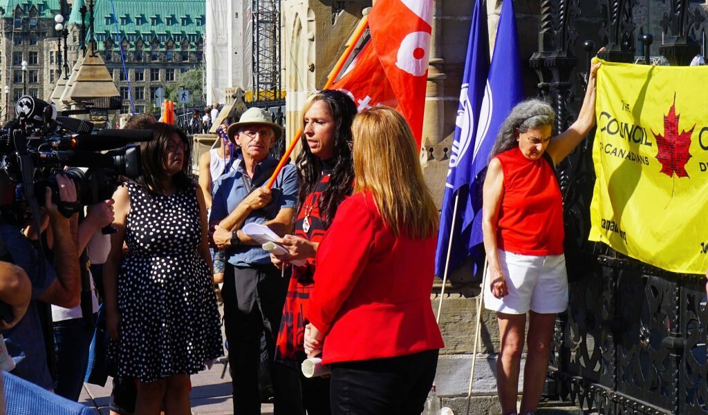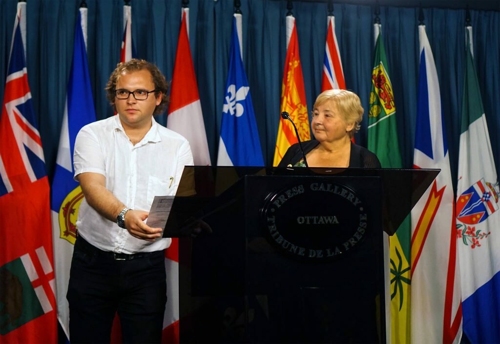 Communist Party leader Elizabeth Rowley delivered the CPC’s demand that Canada immediately withdraw from NAFTA and NATO at a press conference in the Centre Block at Parliament Hill, accompanied by the Parti communiste du Québec’s Adrien Welsh. Rowley described NAFTA as “a continental corporate constitution” and said the “trade” deal “has always been about corporate globalization, and enabling US based, multi-national corporations to become more powerful than elected governments and public institutions.”