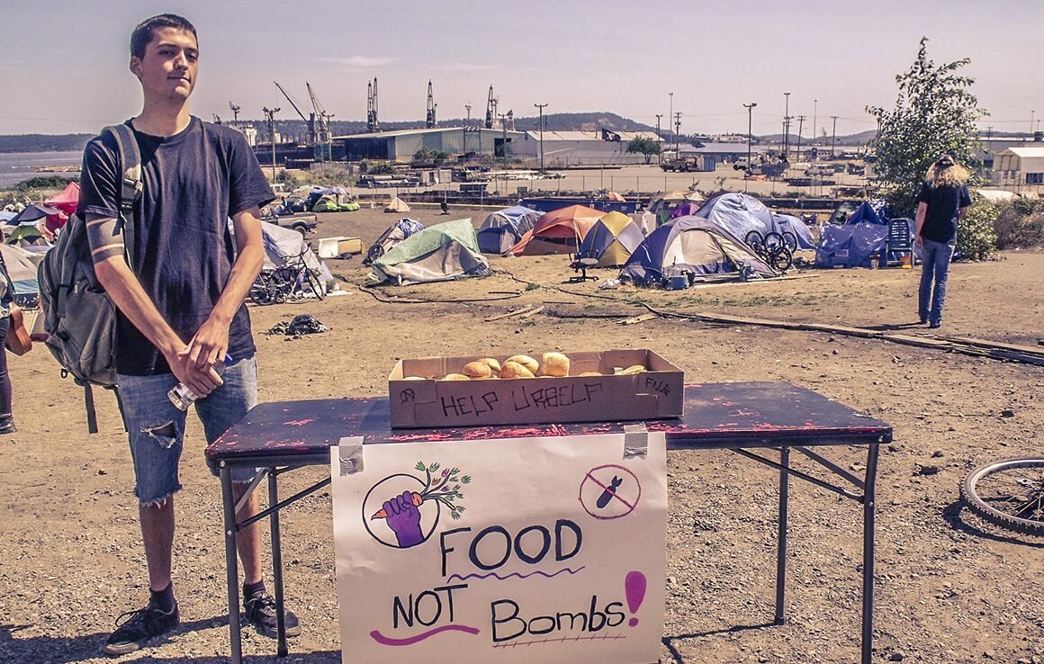 A newly formed Nanaimo chapter of Food Not Bombs provided free sandwiches to campers and counter-demonstrators, making its debut at Discontent City that day. Local YCL members have been helping with the food justice initiative and are also in the process of forming an official YCL club.