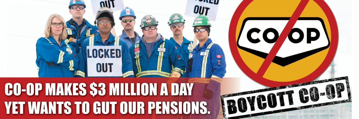 But the members of Local 594 aren’t giving up, and they are taking this struggle to a bigger arena. Unifor is asking people to boycott the local co-ops that own Federated Co-operatives Limited (FCL) until the lock out has ended and workers receive a fair contract with no concessions to their pension plan. Not all co-ops in Canada are part of the FCL network – Co-op taxi companies operating in several areas and the Pincher Creek Co-Op in Pincher Creek, Alberta are not on the Unifor boycott list. A full list of the boycotted co-ops is available at boycottco-op.ca.