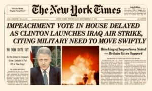 This is reminiscent of the airstrike that former US President Bill Clinton launched on Iraq amid impeachment proceedings against him in 1998.
