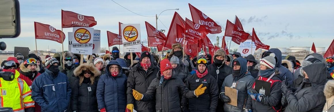 “Co-op executives locked our members out six weeks ago and today we are locking them out. No fuel will be leaving this refinery,” said Unifor National President. “This tremendous display of solidarity is sending a message to this greedy multi-billion dollar conglomerate to get back to the table and bargain a fair deal.”