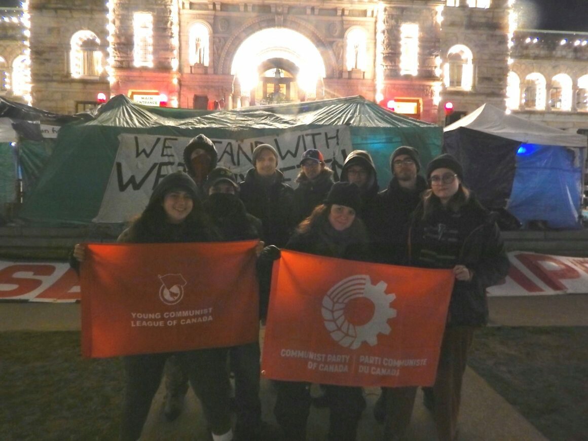 On February 11, in support of Wet’suwet’en, around 1,000 people surrounded the British Columbia legislature building in Victoria, on the traditional territory of the Coast Salish Lekwungen nation. This shutdown of the legislative session was in response to the provincial government’s support for the Coastal GasLink pipeline and for the RCMP invasion of Wet’suwet’en territory in Northern BC, where hereditary chiefs are resisting the construction of the pipeline through their traditional lands. The BC government contracts the RCMP to provide policing throughout the province.