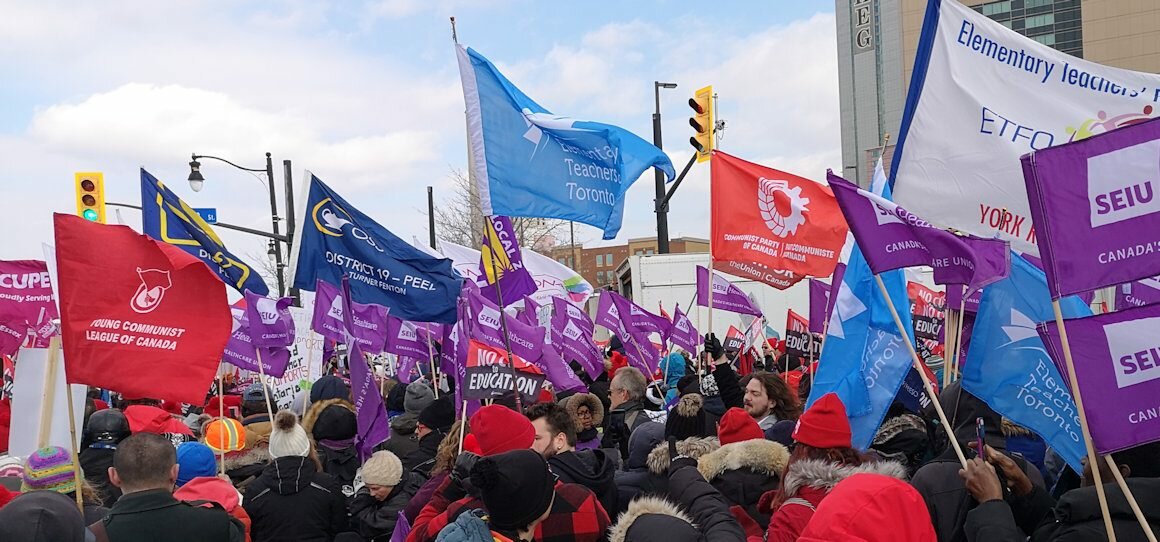 Each of the different unions has faced specific attacks from the Conservative government of Doug Ford, but key issues for all teachers were provincial plans to increase class size and introduce mandatory online learning for high school students. Both of these measures would result in job losses for teachers and reduced quality of classroom education for students. They are part of an ongoing Conservative strategy to underfund public schools and sell off school land and assets, promote private and for-profit education, weaken education unions and further undermine local democracy. This comprehensive attack helped forge a historic united front of the different unions.